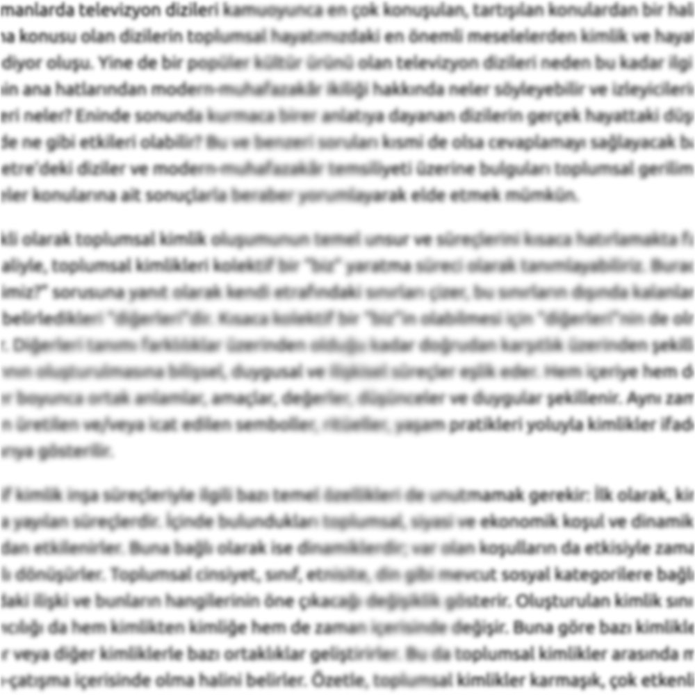 Değerlendirme, toplumsal kimlik oluşumunun temel unsur ve süreçlerini hatırlatmakla başlayıp Türkiye'de modern-muhafazakar ayrımının başlangıç noktasından bu yana yaşadığı dönüşümlerin ve bu dönüşümlerin etkilerine değinerek devam ediyor. Devamında, güncel ana akım medyanın bu ayrımı diziler yoluyla araçsallaştırması Barometre verileriyle birlikte değerlendirilerek toplumsal kutuplaşmanın seyrine yönelik ipuçları aranıyor. Bu arayışın ortaya çıkardığı bulgulara ek olarak dizilerin toplumdaki gruplar arasında hangi konularda diyalog zemini oluşturmaya yardımcı olabileceğine değiniliyor.