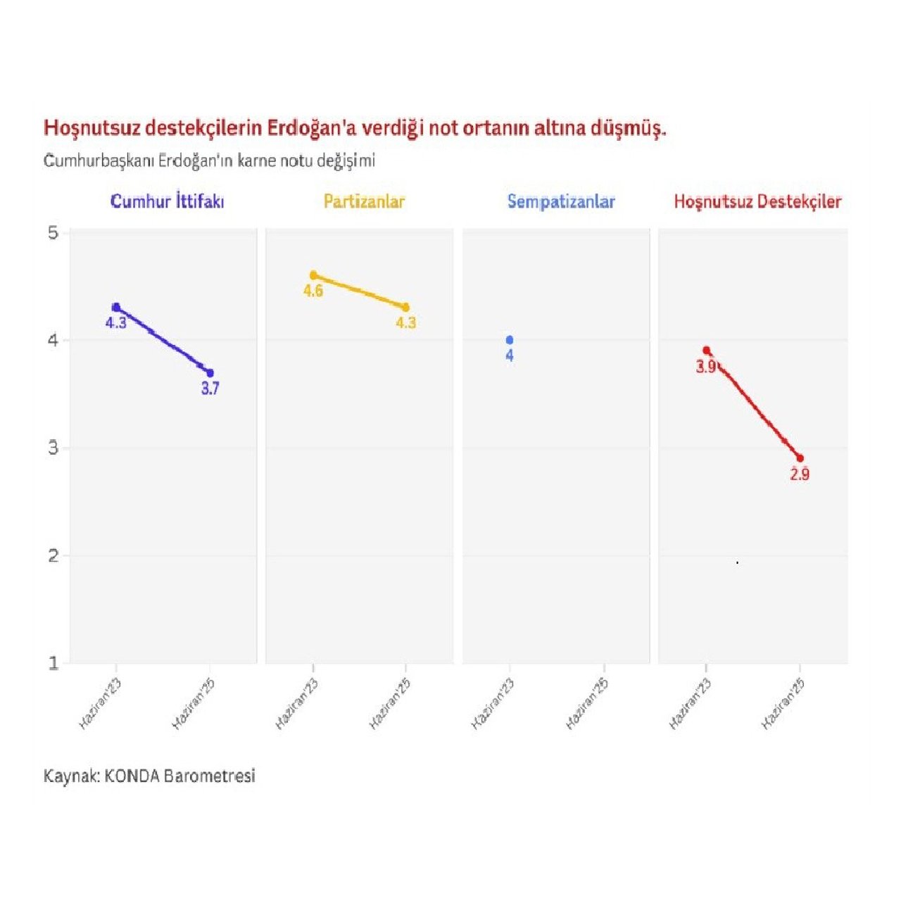 Cumhur İttifakı seçmeninin seçmen profili değişti. Partizanlar hâlâ Erdoğan’a bağlılığını korurken, Hoşnutsuz Destekçiler ekonomik sıkıntılar ve siyasete güvensizlik nedeniyle kararsızlaşıyor. Bu kesimin bir bölümü CHP’ye yönelse de tercihlerin kalıcı olup olmayacağı belirsiz. 2023 Seçimleri'nin ardından terörle mücadelede olumlu beklenti seçmeni ortaklaştırırken, bugün Çözüm Süreci'ne Hoşnutsuz Destekçiler ikna olmamış görünüyor. Cumhur İttifakı'na oy verenlerin yüzde 63'ü bugün halen ittifak partilerine partizanca bağlı. Bu, Türkiye genelinde her 3 kişiden 1'inin bu eğilimde olduğu anlamına geliyor.