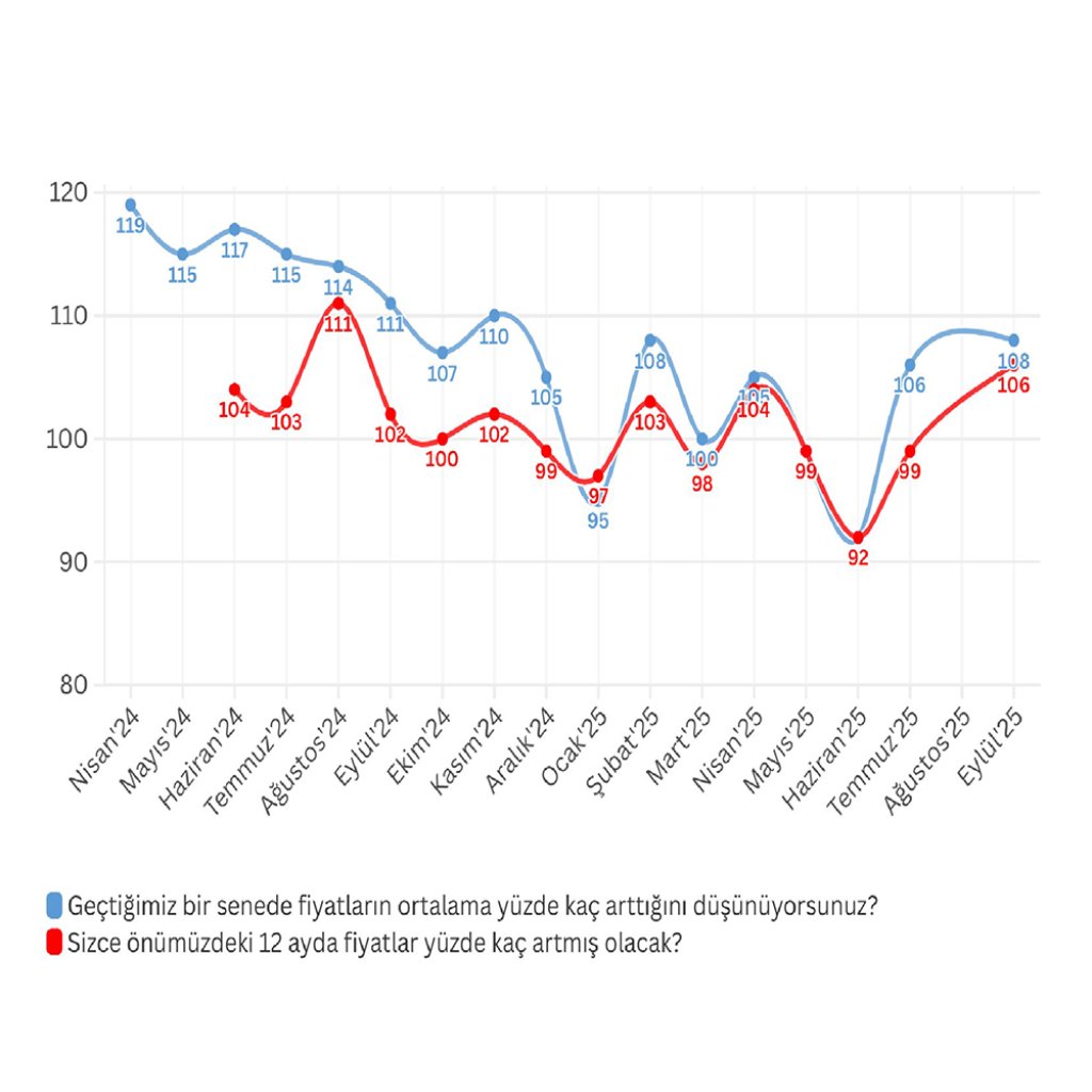 Aralık ayında önümüzdeki 12 aya ilişkin enflasyon beklentisi genel olarak önceki ayla aynı seviyede kalmıştır. Bununla birlikte, farklı toplumsal kümeler arasında beklentilerin yönü ayrışmaktadır; emekliler, ileri yaş grupları ve sosyal medya kullanmayanlarda beklenti düşe